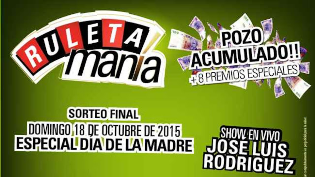 Hoy, a partir de las 23:30hs se festejara el “Día de la madre” con un especial de lujo, además del tan esperado “Sorteo Final” de la promoción “Ruletamanía”. La noche será engalanada con el imperdible show musical de “Jose Luis Rodriguez”.
