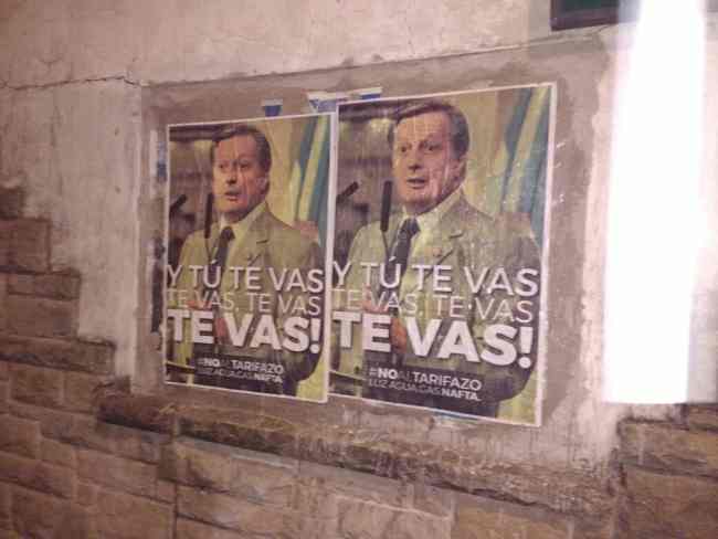 Las paredes del país despiden a Aranguren. Como una especie de augurio y en sintonía con los rumores que vienen circulando desde hace varios días, esta mañana las paredes del país amanecieron plagadas de afiches con el rostro del ministro de Energía, Juan José Aranguren, y una polémica frase: “Y tu te vas, te vas, te vas, te vas”. ¿Renuncia el hombre de Shell?