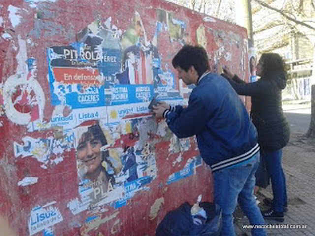 Tal como se anunciara, la fuerza que tiene a Andrea Cáceres como candidata a primer concejal a nivel local, Unidad Ciudadana, comenzó con los trabajos de limpieza de paredones, columneros y demás lugares utilizados con fines publicitarios electorales.