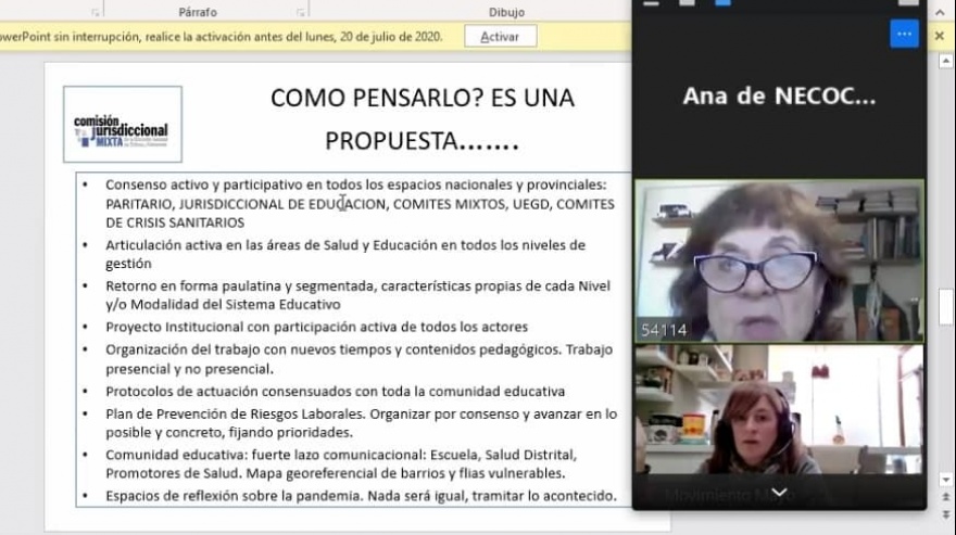 Durante la actividad, se analizó la delicada situación sanitaria actual, así como la inmensa tarea que implicará construir colectivamente las condiciones que hagan posible el regreso a las clases presenciales.