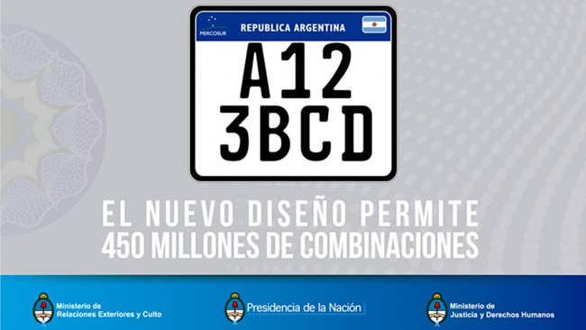 La flamante patente Mercosur presenta transformaciones de base. La nueva será es más larga que la actual: suma 400 milímetros de largo por 130 milímetros de altura, un tamaño que iguala las dimensiones de las patentes que se utilizan en los vehículos de la Unión Europea. La leyenda será una combinación de siete caracteres: cuatro letras y tres números. La matrícula se leerá con dos letras, tres números y dos letras finales. La última letra del segundo módulo irá ascendiendo (AA 000 AA, AA 000 AB) para hacer progresivo el registro del patentamiento.