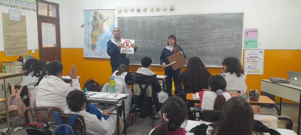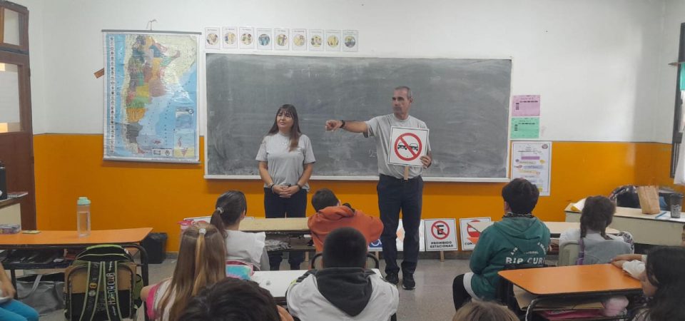 La actividad estuvo a cargo de los agentes Gustavo Vómero y Andrea Boero, quienes integran el equipo del Observatorio y se encargan de transmitir, de manera didáctica y participativa, conceptos clave sobre las normas de tránsito y la importancia del respeto a las señales viales.