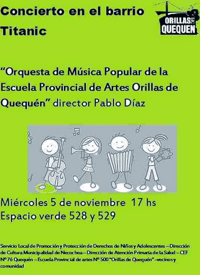 CONCIERTO EN EL BARRIO FEDERAL 6 DE QUEQUÉN, EL MIERCOLES 5 DE NOVIEMBRE A LAS 17.00 HS.