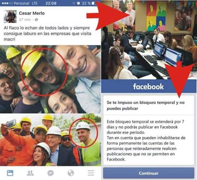 En el caso argentino, lo que abundan cada vez más es la censura e inhabilitación de contenido político contrario al gobierno de Mauricio Macri. Se puede explicar esto a las conversaciones que tuvo el propio presidente argentino con autoridades de la empresa Facebook al comienzo de su gestión. Pero otra explicación es la millonaria inversión publicitaria que deriva el gobierno en esta red social, según se ha denunciado desde el parlamento.