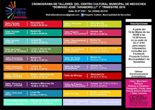 En tanto, se recuerda a la población que los talleres comenzarán a dictarse a partir del 4 de abril, y los que están a disposición este año son los siguientes: