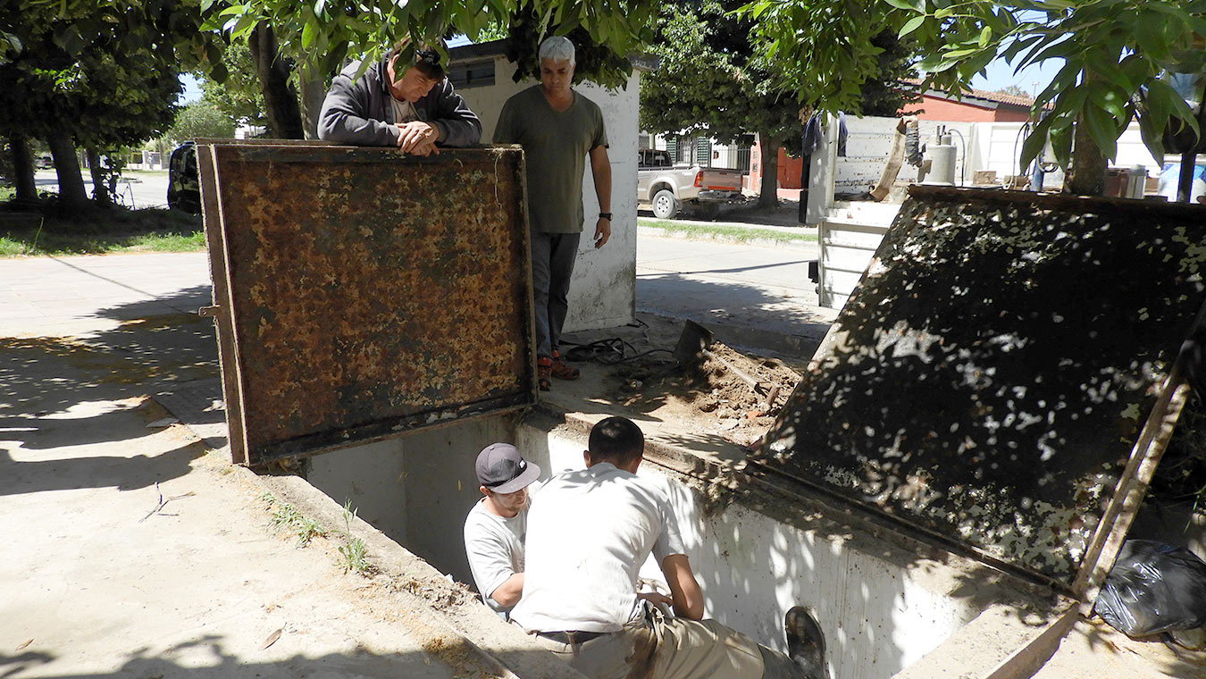 Acompañando a las distintas cuadrillas que trabajan simultáneamente en diversas ubicaciones, respondiendo a los reclamos de los vecinos, el ingeniero Leonardo Gaitán, titular del área, explicó que en estos momentos se está haciendo “una modificación sobre la red, en el pozo 24, que está en 75 y 106”.