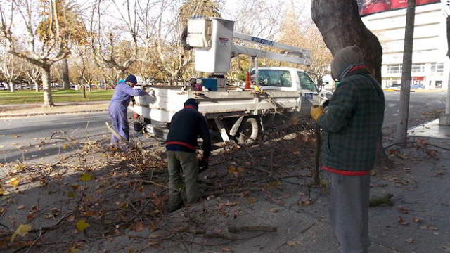 Con el apoyo de un elevador del Corralón Municipal y coordinados por las direcciones de Espacios Públicos y Forestal, áreas dependientes de la Secretaría de Planeamiento, Obras y Servicios Públicos, cuadrillas municipales están abocadas a la culminación de los trabajos de poda planificada en la Plaza Dardo Rocha.