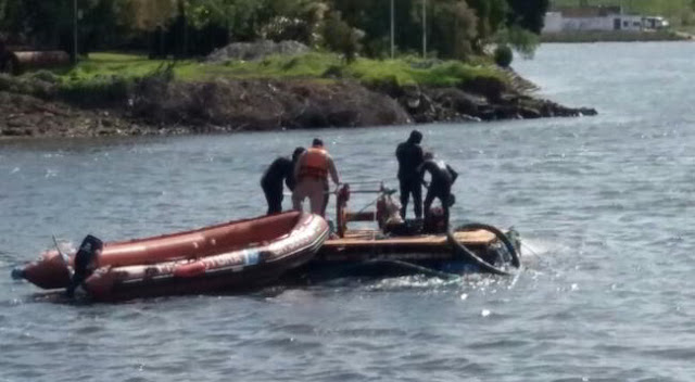 En el lugar, en la tarde de este jueves 26 trabajaban equipos de Prefectura Naval ayudados por distintas herramientas. “Afuera hay una bomba y en el río una balsa, un bote y una Sorbona, que es una aspiradora que está sacando el barro que está por debajo del caño, para liberarlo del fondo y que se puedan pasar las piezas luego”, explicó Gaitán.