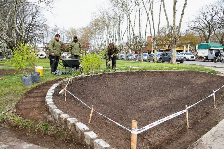 El personal de la Dirección de Espacios Públicos, área dependiente de la Secretaría de Planeamiento, Obras y Servicios Públicos de la comuna, trabaja incansablemente para embellecer la Plaza dardo Rocha, devolviéndole el brillo que supo tener alguna vez.