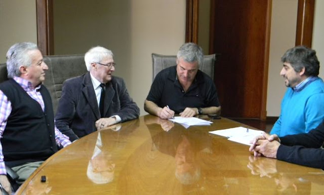 El Presidente del Consorcio de Gestión de Puerto Quequén mantuvo una reunión con el Presidente Oscar Carlson y el Secretario Ing. Ramón Echegoyen de la Cooperativa de Crédito Necochea Ltda., donde suscribieron un convenio para el aporte de 500 mil pesos.