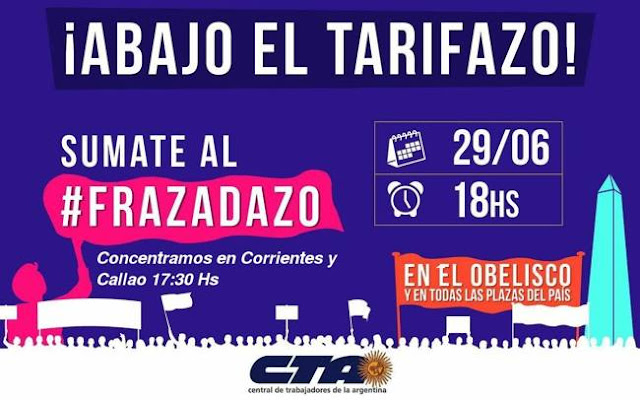 En el día de mañana se llevará a cabo el #Frazadazo a lo largo y ancho del país como una forma de manifestación de toda la ciudadanía contra los aumentos en los servicios de luz, gas, agua, trasporte, entre otros. En la ciudad de Buenos Aires se realizará una marcha con velas y frazadas a partir de las 18 hacia el Obelisco. En este marco, en el día de hoy se brindó una conferencia de prensa en la sede de la CTA-A Nacional, en la cual Pablo Micheli, José Rigane y Héctor Polino, entre otros referentes, expresaron la preocupación de miles de compañeras y compañeros que están sufriendo las consecuencias del Tarifazo.