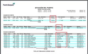 En este viernes 30 de enero, para no abundar en días anteriores, se encuentran en muelle y en rada 13 buques. Son 260 tripulantes en su casi totalidad extranjeros. En la imagen y remarcados en rojo, los buques provenientes de Tailandia, Bangladesh e Indonesia debieran estar siendo esperados con todo el personal disponible y con todas las herramientas que se cuentan para establecer el filtro sanitario.