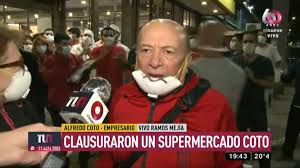 Alfredo Coto se apreció esta tarde en una sucursal de su cadena de supermercados de Ramos Mejía después de enterarse que el intendente Fernando Espinoza había ordenado su clausura.