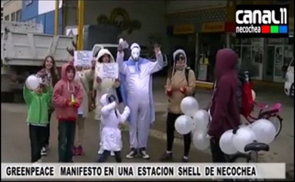 GREENPEACE MANIFESTO EN UNA ESTACION SHELL DE NECOCHEA