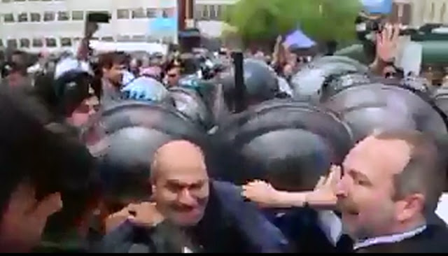 Cuando fuerzas policiales se disponían a cargar contra los manifestantes,CFK se bajó del auto y salió caminando para impedirlo