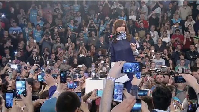 La candidata a senadora por Unidad Ciudadana, Cristina Fernández de Kirchner, realiza este miércoles el relanzamiento de su campaña hacia las elecciones legislativas que se realizarán el 22 de octubre próximo.