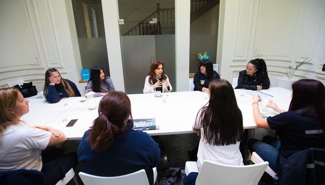 Cristina Fernández de Kirchner se reunió esta tarde, durante más de una hora y media, con trabajadoras de la empresa Pepsico, que continúan con un plan de lucha en reclamo de la reincorporación de las y los 600 trabajadores/as despedidas/as, el 20 de junio de este año.