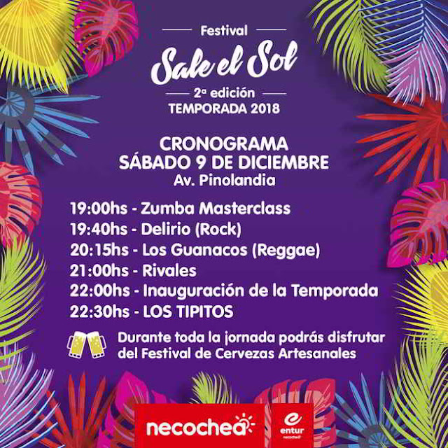 A las 19 comenzarán las actividades del Festival “Sale el Sol” en la Av. Pinolandia, mientras que a las 22 será el acto central. Simultáneamente, estará el 2º Encuentro de la Cerveza Artesanal.