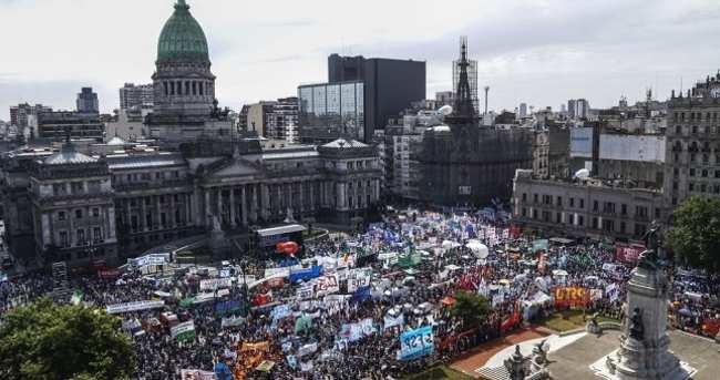 El secretario de la Asociación bancaria, Sergio Palazzo, aseguró que “hoy empieza la lucha hasta voltear las reformas del Gobierno”, al cerrar un acto de protesta de gremios y movimientos sociales frente al Congreso.