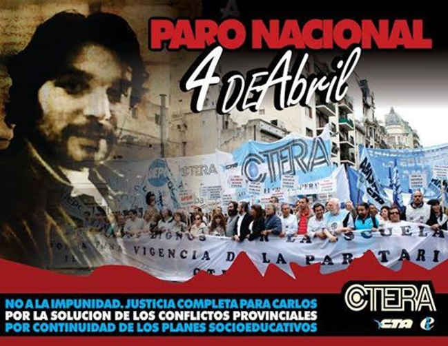 Gremios docentes de todas las provincias anunciaron su adhesión a la huelga convocada por la CTERA en reclamo de la continuidad de programas socioeducativos y mejoras salariales. También exigirán justicia por Carlos Fuentealba. Al cumplirse 9 años de su asesinato en Neuquén, todos los responsables políticos continúan en libertad, entre ellos Jorge Sobisch y Eugenio Burzaco.