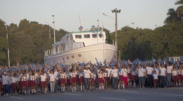 El desfile se produce en el mismo lugar donde hace poco más de un mes se rindió honores a Fidel, antes de que partieran sus cenizas hacia Santiago de Cuba.