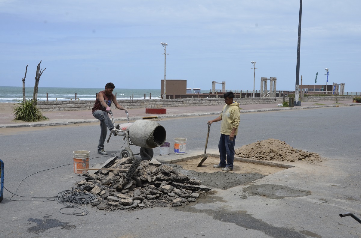 Personal de la Dirección de Servicios Públicos se encuentra realizando tareas de bacheo y hormigonado en la Avenida 2 entre 89 y Pinolandia, con el fin de mejorar el sector de cara a la temporada veraniega que se avecina.
