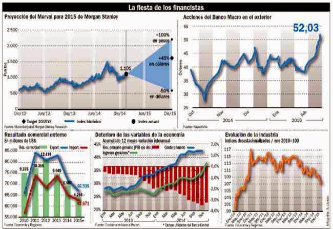 Como si fueran dos mundos distintos, mientras la Argentina sufre recesión, caída del empleo y menos inversión, con ruidos políticos tras la muerte del fiscal Alberto Nisman, los activos financieros vinculados con el país viven una fiesta.