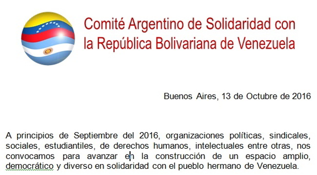 Se conformó el del Comité Argentino de Solidaridad con Venezuela, aprobándose una declaración.