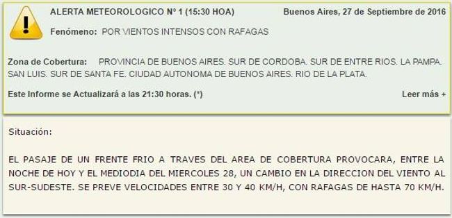 El Servicio Meteorológico Nacional, anuncia vientos intensos para la Pcia.de Bs.As. Se prevé velocidades e/ 30 y 40 km/h, con ráfagas de hasta 70 km.