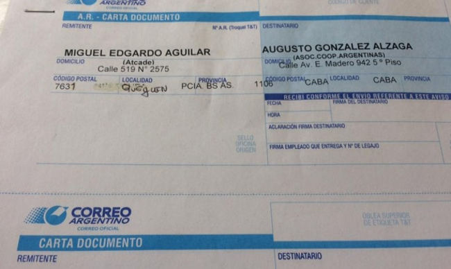 En cuanto a la solicitada publicada en el matutino local y firmada, entre otros, por el Consorcio de Gestión de Puerto Quequén, el Centro de Acopiadores de Cereales y el Honorable Concejo Deliberante, en donde se denuncia a «grupos de dudosa representatividad» de utilizar la «coacción, miedo y extorsión» para la «obtención de beneficios propios», Aguilar contestó acusando a los firmantes de «mentirosos» que «se han juntado para seguir encubriendo a las grandes empresas».