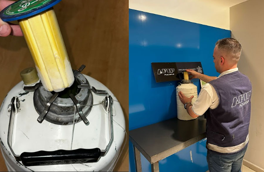 En ese momento el hombre se puso sumamente nervioso y terminó diciendo que llevaba semen canino. Al controlar la carga, los agentes corroboraron que llevaba 5 litros de la sustancia en el interior del contenedor que es usado para transportar este tipo de elementos ya que es refrigerado.