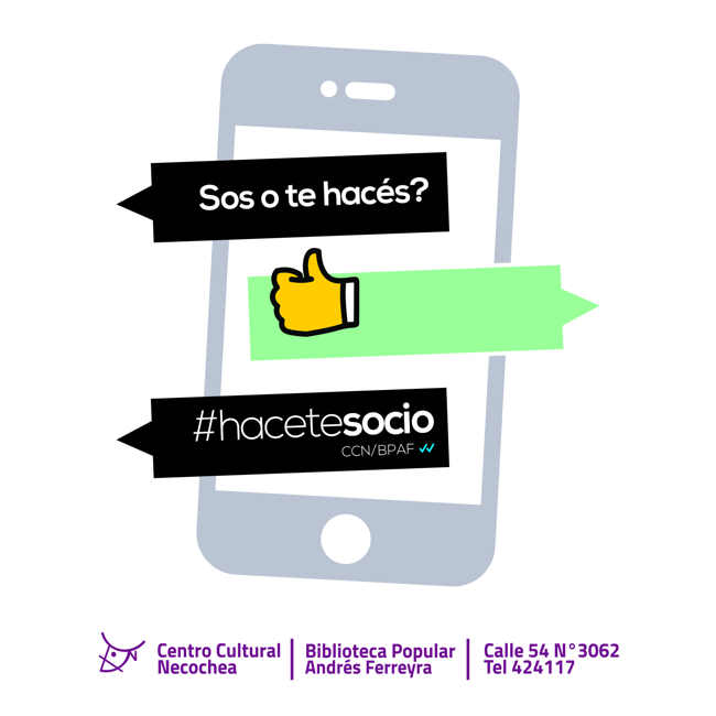 El Centro Cultural de Necochea – Biblioteca Popular Andrés Ferreyra renueva este año su campaña para sumar asociados a la Institución, denominada «HACETE SOCIO», que el año anterior sumó unos 250 nuevos socios. El objetivo de la misma es continuar incrementando el número de asociados, además de fortalecer el vínculo con los socios actuales.