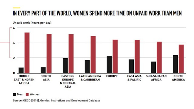 El desequilibrio en la proporción del trabajo no remunerado limita la capacidad de las mujeres de incrementar sus horas de trabajo asalariado, formal y pago. Como resultado, en todo el mundo, las mujeres que representan menos del 40% del empleo total, constituyen 57 % de los que trabajan menos horas y a tiempo parciales. Así, las mujeres condicionan su carrera profesional en pos de compatibilizar tareas del hogar, estudios, carrera profesional y vida laboral.