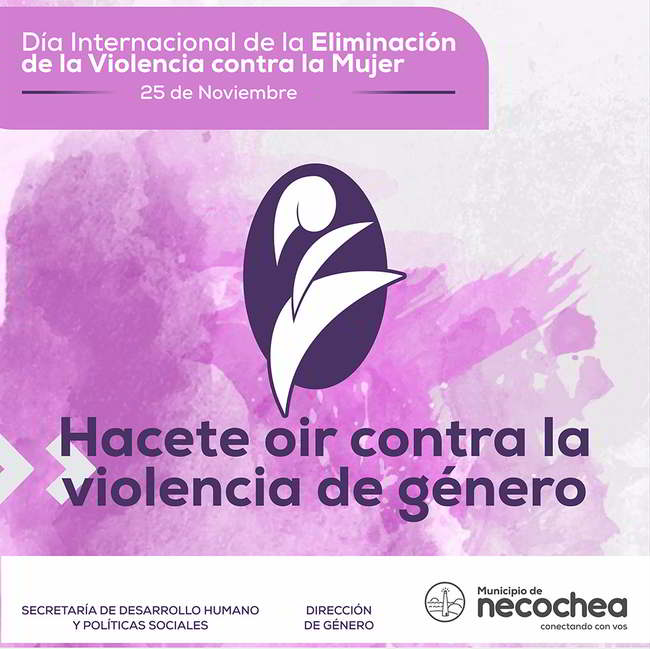 La Dirección de Políticas de Género, dependiente de la Secretaría de Desarrollo Humano y Políticas Sociales,  anuncia  que en el marco del “25 de Noviembre Día Internacional contra la Violencia hacia las Mujeres” bajo el lema “Hacete oír contra la Violencia de Género”, se llevarán a cabo Talleres de Reflexión en Necochea, Quequén, La Dulce y Santamarina.
