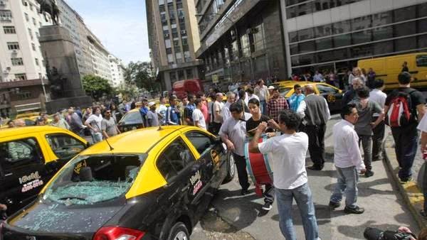 EN LA CIUDAD DE BUENOS AIRES LA DISPUTA ENTRE TAXISTAS PASO A MAYORES Y TERMINO EN GRESCAS DESCOMUNALES.