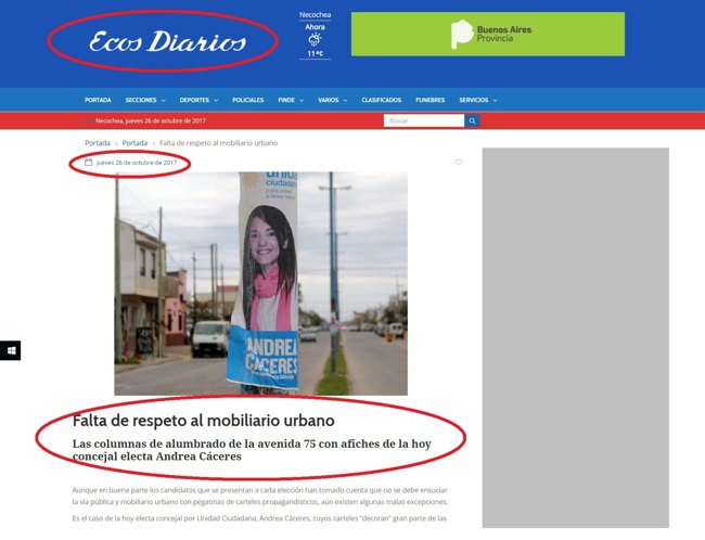 A manera de escándalo, en un artículo publicado este jueves 26 se señala la presencia «aún» de carteles en la vía pública, a 96 horas de finalizada la elección. Es más, habla de «polución visual».