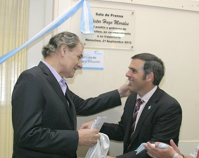 «Necochea, una ciudad impresionante» expresó el conductor, quien por estos días suele desplegar un abanico de halagos hacia esta ciudad del sudeste. No es para menos: aparte del sabroso cachet, el uruguayo recibió también en su último periplo necochense un halago inesperado. En la misma mañana en que realizó su programa, a la Sala de Prensa de la Municipalidad de Necochea le fue impuesta el nombre del popular relator deportivo, descubriéndose una placa con la siguiente leyenda: «Sala de Prensa de Víctor Hugo Morales – El pueblo y gobierno de Necochea en reconocimiento a su trayectoria –  21 de septiembre de 2012».