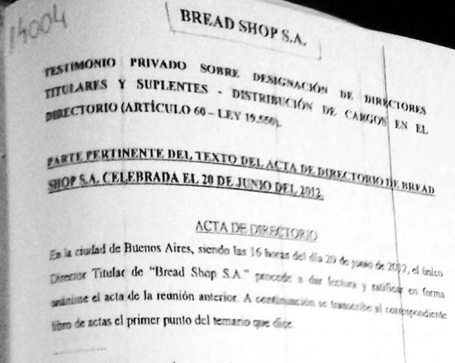 Tal como señalamos en anteriores artículos, una de las empresas responsables de CEPAN es la firma Bread Shop. En la víspera, LANUEVACOMUNA.COM tuvo acceso a documentación oficial respecto a la conformación del directorio, y que los hace responsables directos de la suerte de la veintena de trabajadores y sus familias.