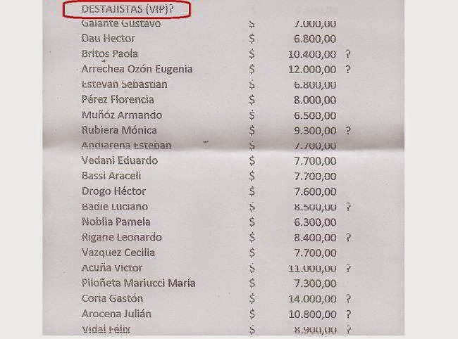 La lista reproduce en primer término los sueldos de los funcionarios del Departamento Ejecutivo, entre ellos el propio intendente y sus secretarios, luego el de los concejales y por último el de los «destajistas vip».