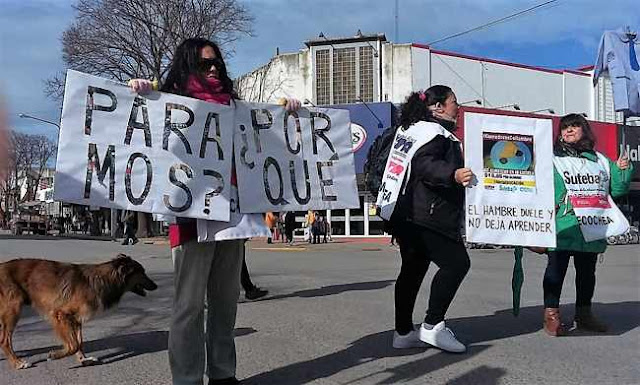 Lxs Trabajadorxs de la Educación junto a lxs compañerxs de ATE, AJB y CICOP, nos manifestamos hoy en el centro de nuestra ciudad CONTRA EL AJUSTE y EL ACUERDO CON EL FMI; en el marco del PARO convocado por la CTA de lxs Trabajadorxs y la CTERA, contando con más del 84% de adhesión en las escuelas del distrito durante el turno de la mañana.