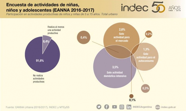 Este jueves se publicaron los resultados definitivos de la segunda Encuesta de Actividades de Niños, Niñas y Adolescentes (EANNA), realizada por el Instituto Nacional de Estadística y Censos (INDEC) y el ex Ministerio de Trabajo, Empleo y Seguridad Social (MTEySS), con datos de 2016 y 2017.