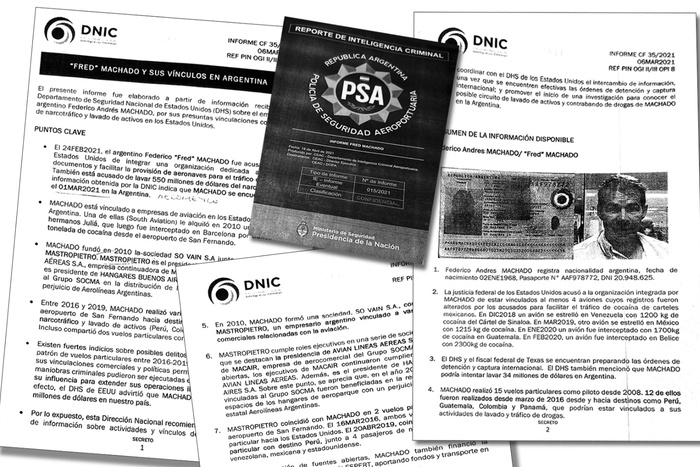 La PSA detuvo a Machado en 2021 por orden de la justicia de Texas. A partir de allí, Inteligencia Aeroportuaria elaboró otro informe —por pedido del propio Ministerio de Seguridad— para complementar el ya existente.