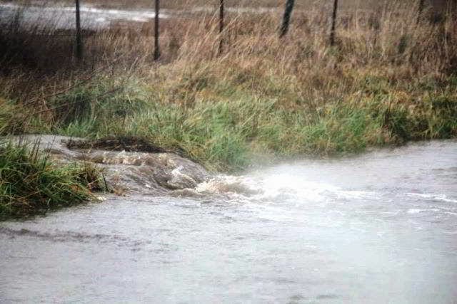 Los canales con agua proveniente de los campos se han desbordado, lo que ha provocado anegamientos de los caminos y la inundación de viviendas en el Balneario Los Ángeles.