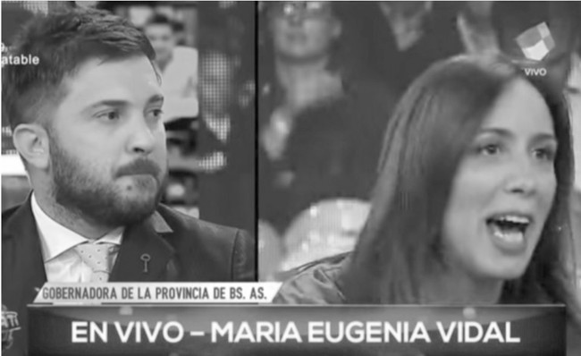 El cruce en cuestión. Dos días antes de las elecciones Primarias, Abiertas, Simultáneas y Obligatorias (PASO), Vidal estuvo de invitada en el programa Intratables, conducido por Santiago del Moro. Allí, el periodista afín al kirchnerismo, Diego Brancatelli le realizó un listado de algunas de las promesas de campaña que, a su entender, no cumplió la gestión de Mauricio Macri.