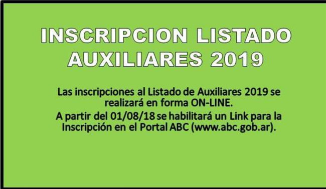 El Consejo Escolar de Necochea comunica que, a partir del 1º de Agosto del corriente año, se habilitará en el Portal ABC (www.abc.gob.ar) un link en el cual todos los aspirantes a porteros y peones de cocina, podrán acceder a la planilla de inscripción que deberá completar online y descargar el comprobante de la misma para acompañarlo a la documentación que presentará el aspirante en el Consejo Escolar durante el mes de septiembre.