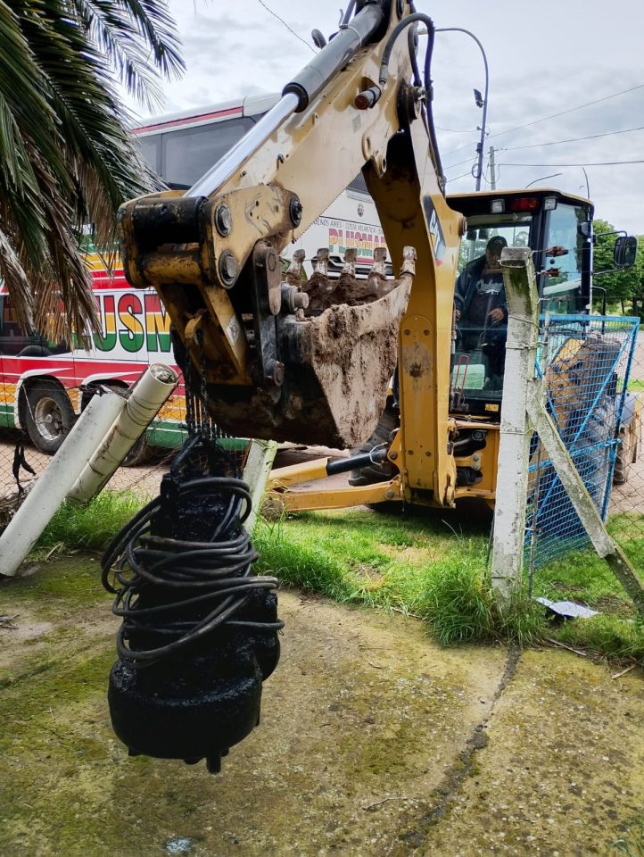 Las tareas comprendieron el izaje y desmonte del equipo dañado, seguido por la colocación de una nueva bomba de similares características, con el objetivo de normalizar el funcionamiento del sistema y asegurar la continuidad del servicio en uno de los puntos clave del sistema cloacal local.