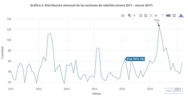 Gráfico 2: Distribución mensual de las acciones de rebelión (enero 2011 – marzo 2017)