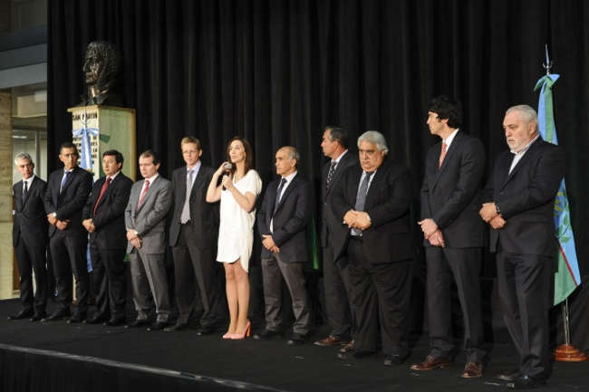 La mandataria bonaerense también puso en funciones a los demás integrantes del directorio: Felipe Hughes, Carlos Pérez y Mario Boindi, por el PRO, y Daniel Arroyo y Mario Meoni, ex intendente de Junín, del Frente Renovador.