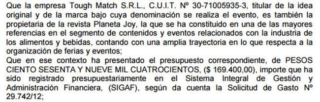 Pero no fue la pauta el único negocio entre Tonelli y el Gobierno Porteño, también le pagaron miles de pesos por organizar catas de vino en hoteles 5 estrellas. Por ejemplo, por la presencia con un stand en las 2 noches de Sparkling Nights, evento en el que modelos top (y no tanto) pasean junto a empresarios (y no tanto) a degustar canilla libre de vinos de alta gama, Tonelli embolsó la suma de $565.280 sumando los $110.000 de 2011 a los $455.280 de 2013.