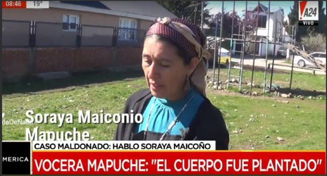 La vocera de la comunidad mapuche de la Pu Lof Cushamen, Soraya Maicoño, aseguró que el cuerpo hallado en el río Chubut «fue plantado» y sostuvo que «hace dos, tres días, no estaba ahí, decididamente».